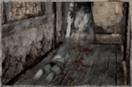 Was drenched in Malice and shivers eternally from the icy cold. 大広間の虐殺を見てしまった女。この部屋まで逃げてきたが、瘴気にのまれて、永遠に続く寒さに震えつづけている。 | |