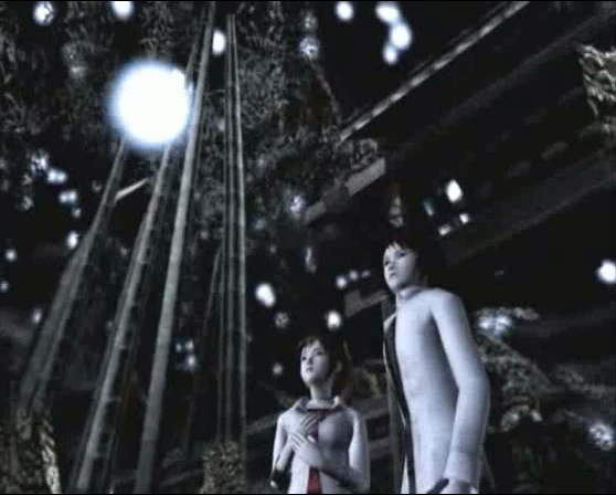 Image of Miku and Mafuyu Hinasaki outside Himuro Mansion, in the second ending of Fatal Frame.